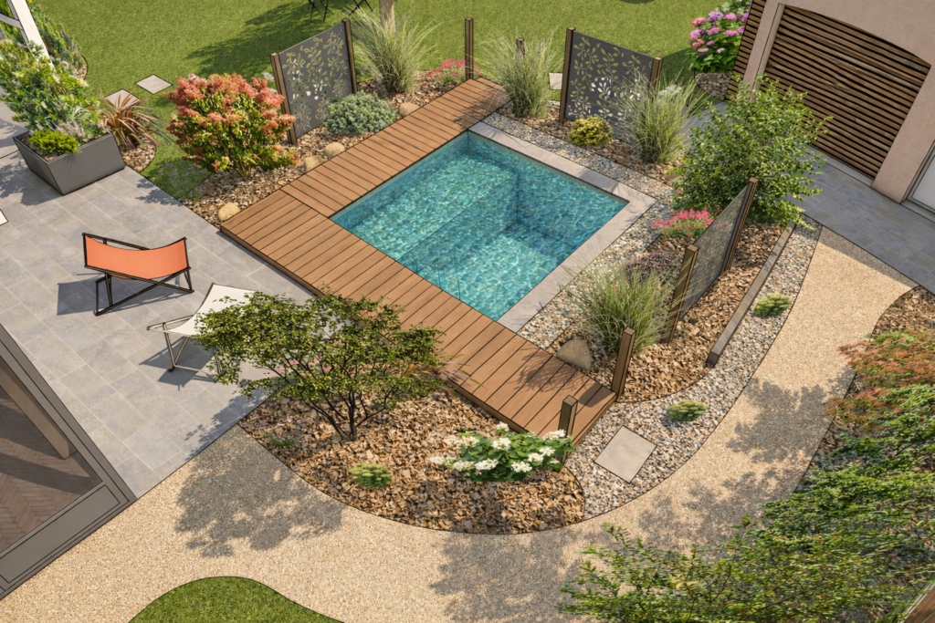 Je conçois en 3D l’aménagement de votre extérieur en fonction de vos envies.