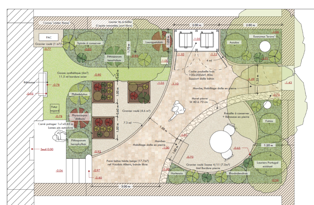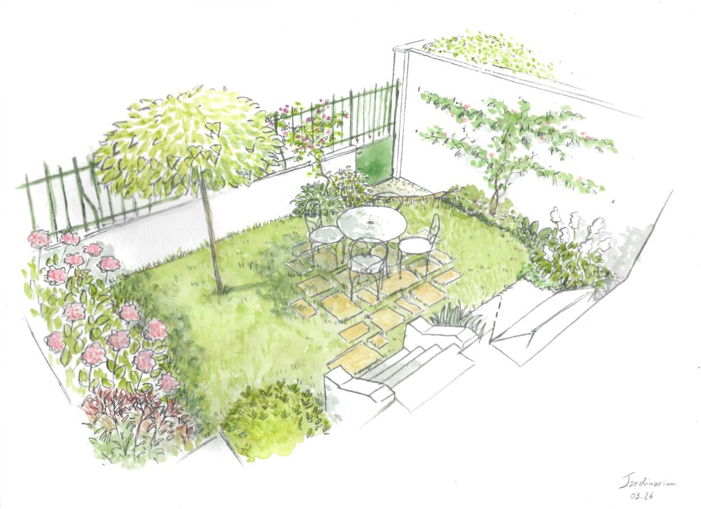 Une esquisse pleine de poésie pour imaginer votre futur jardin, associée à plan 2D détaillé pour en maitriser l’aspect technique.